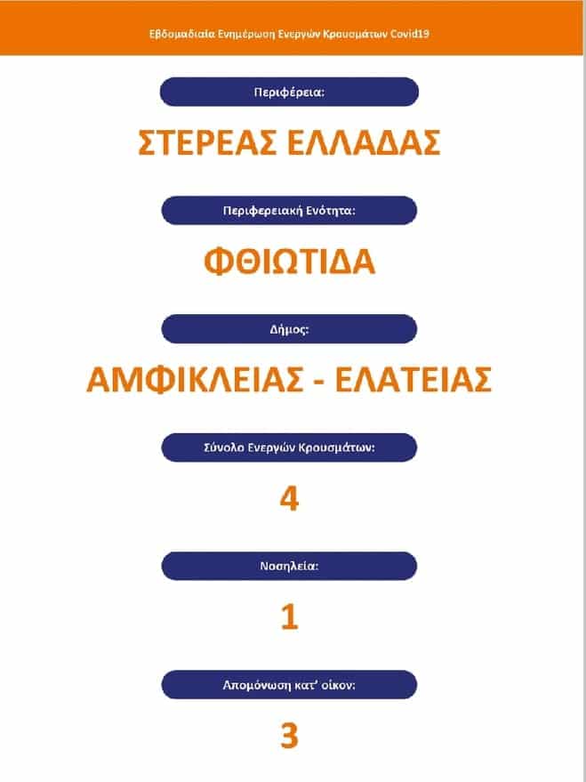 Όλο αυτό το διάστημα της πανδημίας ο Δήμος μας προσπαθεί, με το βάρος που του αναλογεί, να προβεί σε όλες τις απαραίτητες ενέργειες και παρεμβάσεις, ώστε να αποφευχθεί μία ανεξέλεγκτη διασπορά. Η σημερινή εικόνα του Δήμου Αμφίκλειας – Ελάτειας, όπως φαίνεται και στην επίσημη εβδομαδιαία ενημέρωση, δείχνει ότι με πειθαρχία, συνεργασία και το υψηλό αίσθημα ευθύνης όλων μας καταφέραμε να κρατήσουμε τα ενεργά κρούσματα σε χαμηλά και διαχειρίσιμα επίπεδα.