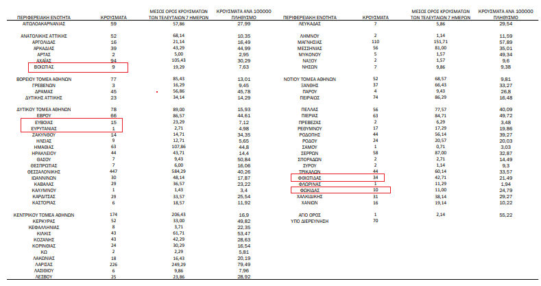 Αναλυτικά τα κρούσματα στη Στερεά σήμερα, έως τις 3 το μεσημέρι.