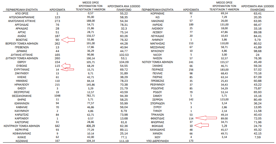 Αναλυτικά τα κρούσματα στη Στερεά σήμερα, έως τις 3 το μεσημέρι.