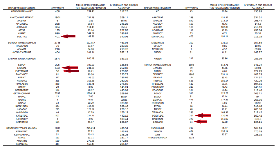 Αναλυτικά τα κρούσματα στη Στερεά σήμερα, έως τις 3 το μεσημέρι.