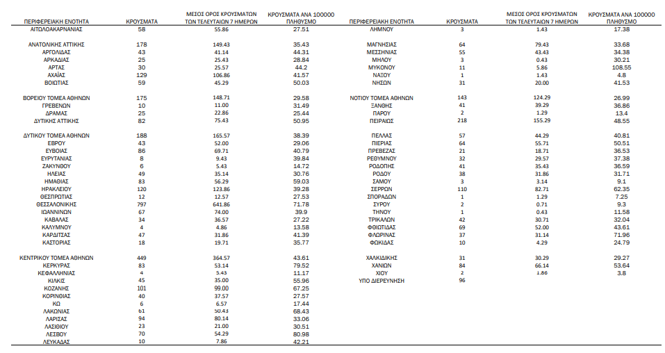 Αναλυτικά τα κρούσματα στη Στερεά σήμερα, έως τις 3 το μεσημέρι.