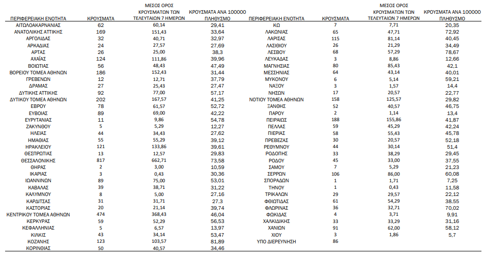Αναλυτικά τα κρούσματα στη Στερεά σήμερα, έως τις 3 το μεσημέρι.