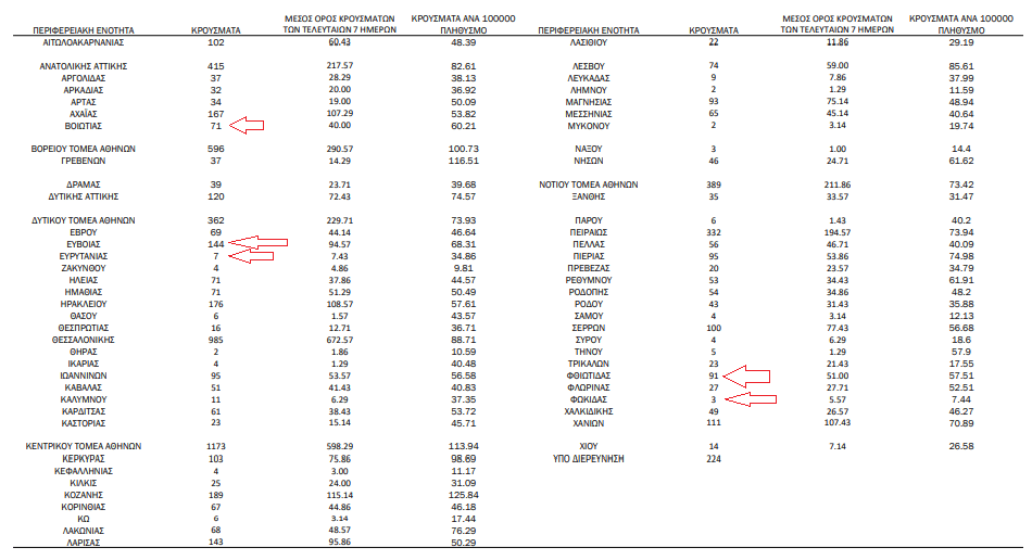 Αναλυτικά τα κρούσματα στη Στερεά σήμερα, έως τις 3 το μεσημέρι.