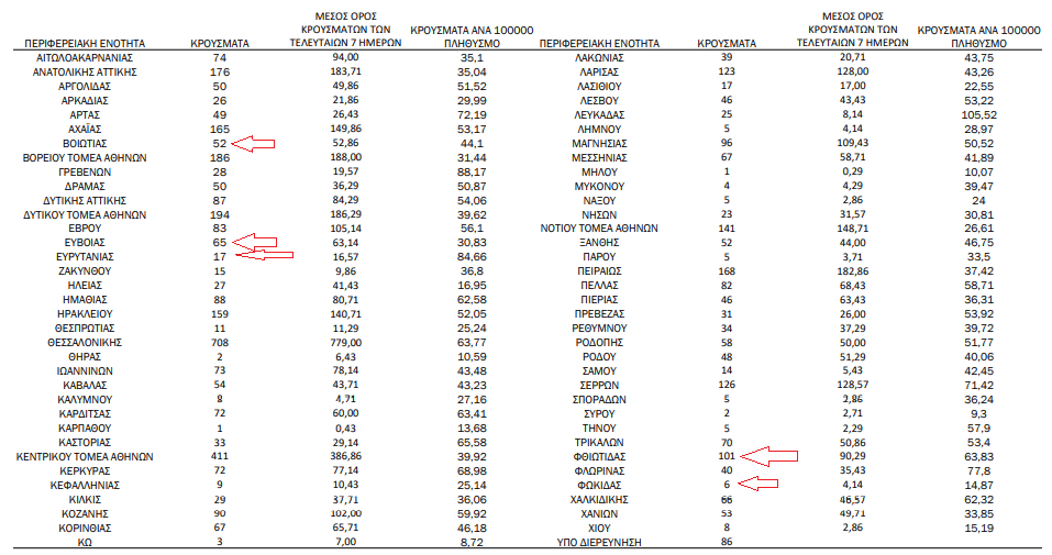 Αναλυτικά τα κρούσματα στη Στερεά σήμερα, έως τις 3 το μεσημέρι.