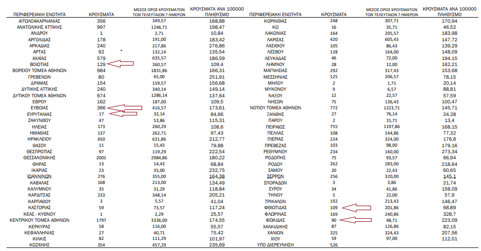 Αναλυτικά τα κρούσματα στη Στερεά σήμερα, έως τις 3 το μεσημέρι.
