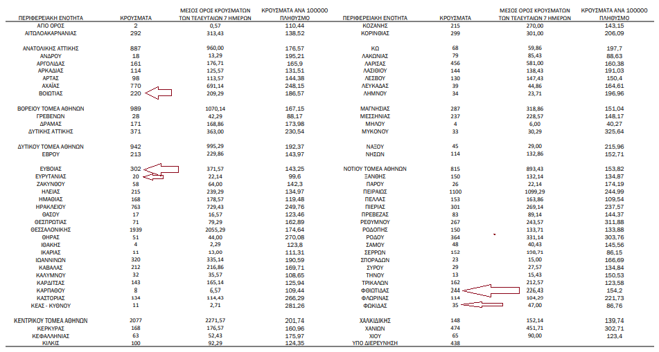 Αναλυτικά τα κρούσματα στη Στερεά σήμερα, έως τις 3 το μεσημέρι.
