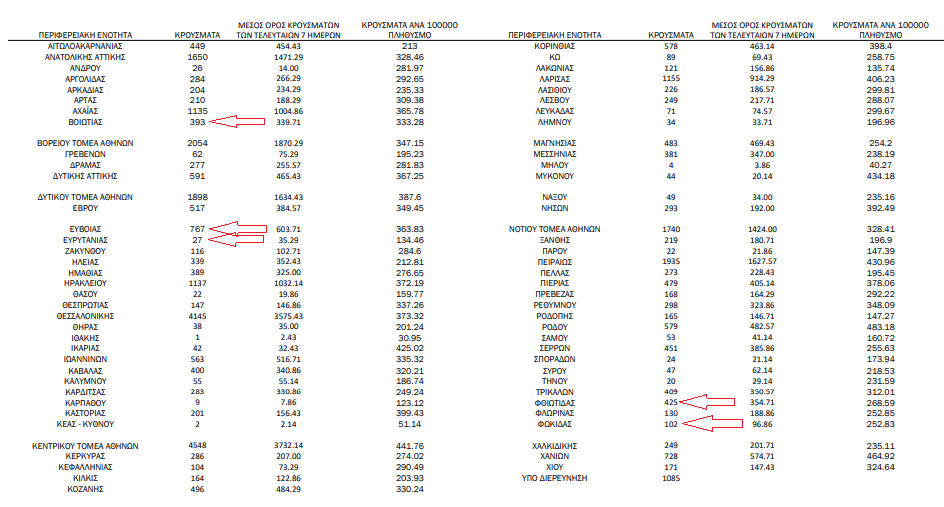 Αναλυτικά τα κρούσματα στη Στερεά σήμερα, έως τις 3 το μεσημέρι.