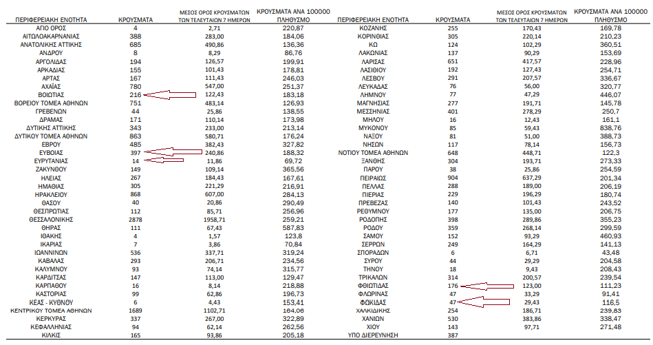 Αναλυτικά τα κρούσματα στη Στερεά σήμερα, έως τις 3 το μεσημέρι.