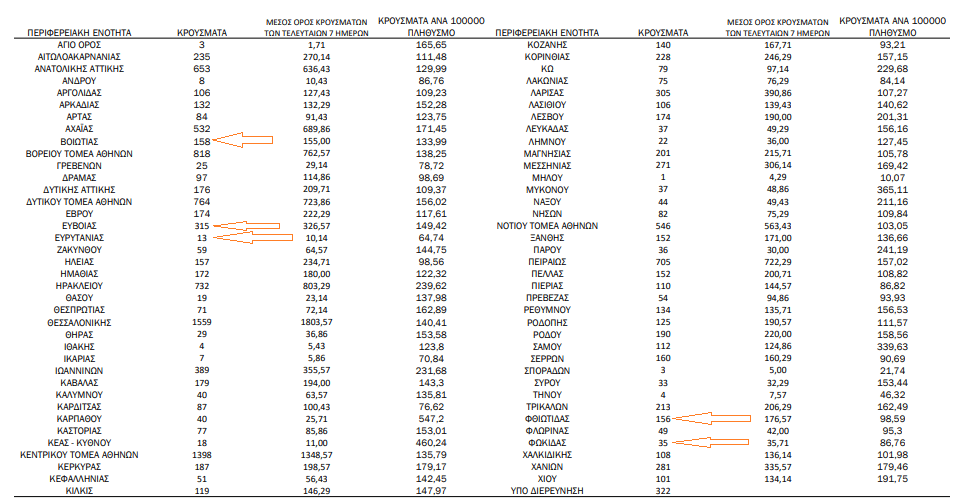 Αναλυτικά τα κρούσματα στη Στερεά σήμερα, έως τις 3 το μεσημέρι.