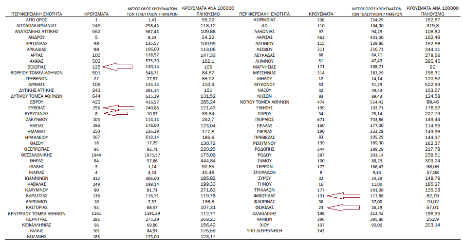Αναλυτικά τα κρούσματα στη Στερεά σήμερα, έως τις 3 το μεσημέρι.