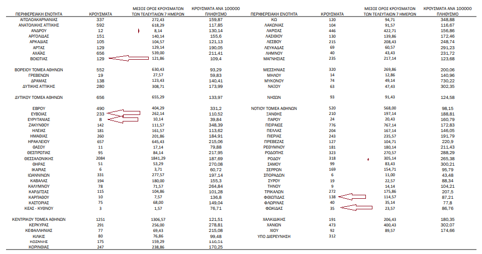 Αναλυτικά τα κρούσματα στη Στερεά σήμερα, έως τις 3 το μεσημέρι.