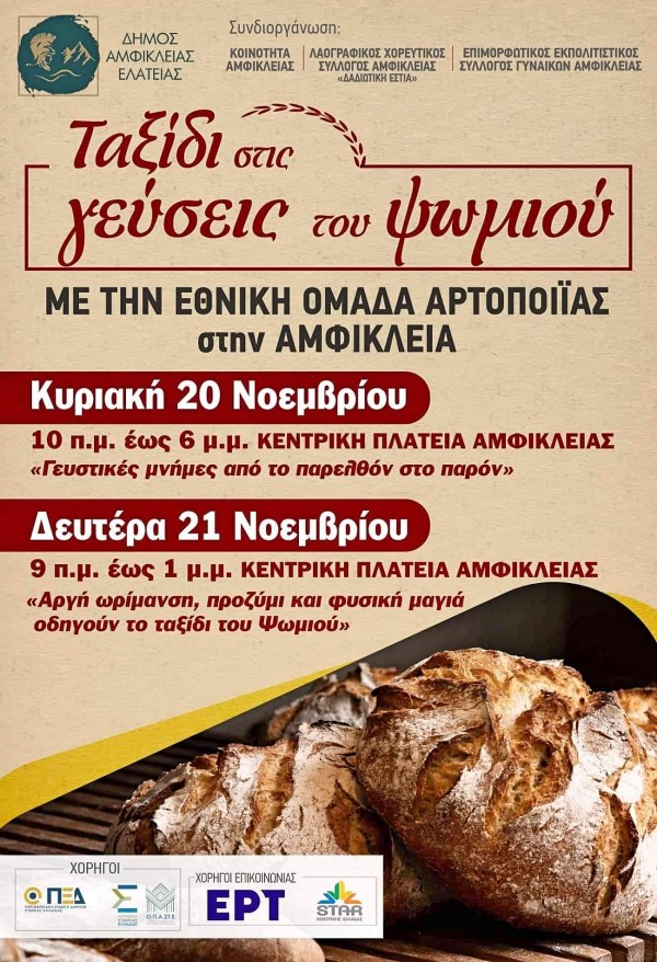 Η καρδιά του ψωμιού και της αρτοποιίας, την Κυριακή 20 & τη Δευτέρα 21 Νοεμβρίου 2022 θα χτυπάει στην Αμφίκλεια, σε ένα διήμερο δράσεων πέρα από τα συνηθισμένα!