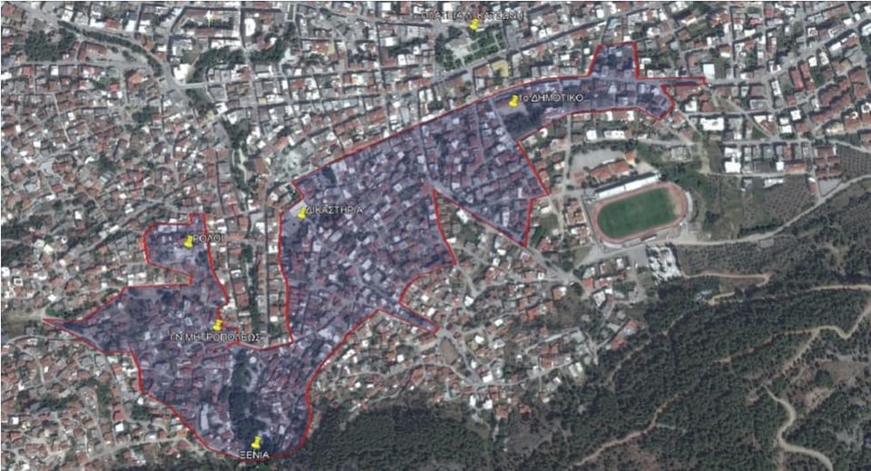 Μηδείας, Γρηγορίου Ε’, Ευαγγελιστρίας, Σπυροπούλου, Κατσιώτου, Πλουτάρχου, Κορύνης, Ιερολοχιτών, Αθάμαντος, Ησιόδου, Περικλέους, Ανδρεαδάκη, Λαμπράκη, Ολυμπίας, Σεφέρη, Σανταρόζα, Ομήρου, Βύρωνος, Σολωμού, Ηνιόχου, Καραγιαννοπούλου (από κεντρική πλατεία έως Σολωμού), Λεβάδου, Δάφνης, Λήθης & Μνημοσύνης, Τροφωνίου, Παυσανίου, Αγ. Δημητρίου, Ν. Πανουργιά, Μεντζίλη, Εθν. Αντιστάσεως, Ελευθερίας, Αγ. Άννης, Γρηπονησιώτη και Ανδρούτσου.