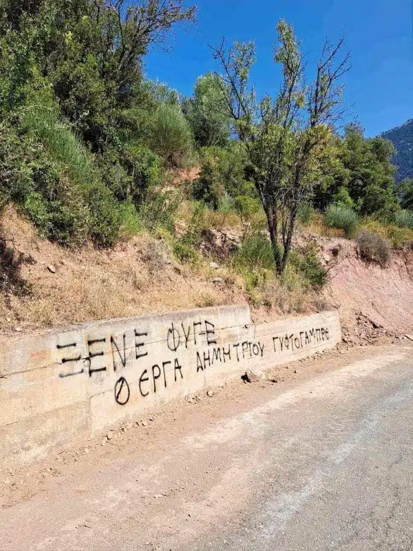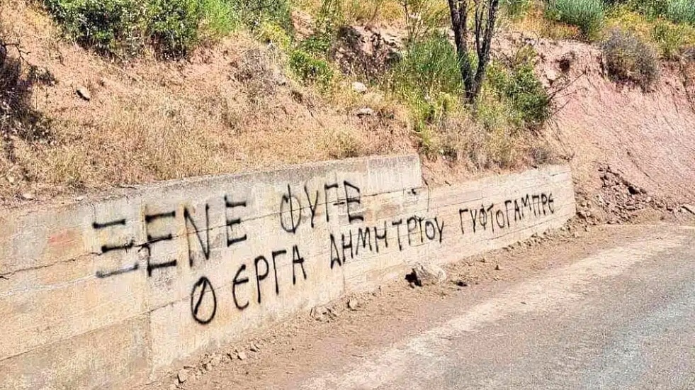 Πιο συγκεκριμένα, υβριστικό σύνθημα κατά του Προέδρου της ΤΚ Δροσοχωρίου και ξανά υποψήφιου στις επικείμενες εκλογές Σπύρου Δημητρίου έχει γραφτεί με σπρέι πάνω σε τοιχίο στο δρόμο προς το χωριό (φώτο).