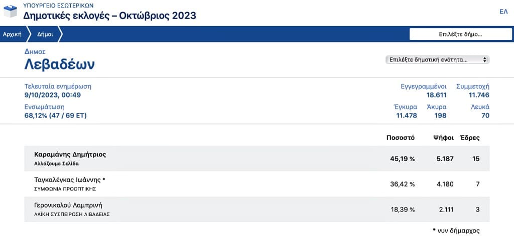Δείτε τη ροή των αποτελεσμάτων στο Δήμο Λεβαδέων ΕΔΩ