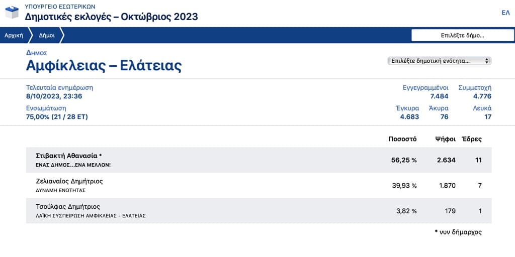 Δείτε τη ροή των αποτελεσμάτων στο Δήμο Αμφίκλειας-Ελάτειας ΕΔΩ