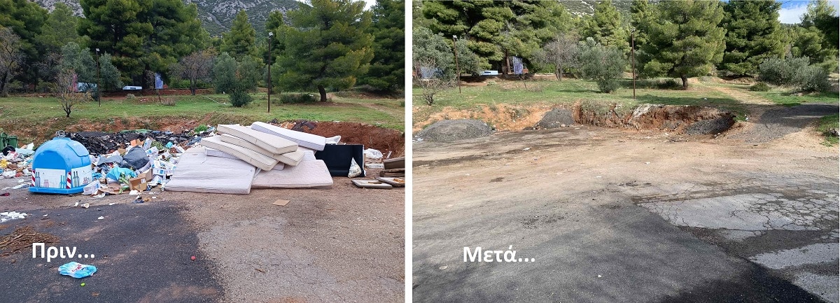 Τα πρόσφατα περιστατικά παρουσιάστηκαν στην πόλη των Δελφών, από τα οποία επισυνάπτεται το σχετικό φωτογραφικό υλικό, όπου παρουσιάζεται η εικόνα πριν και μετά την παρέμβαση της αρμόδιας υπηρεσίας για την αποκομιδή.