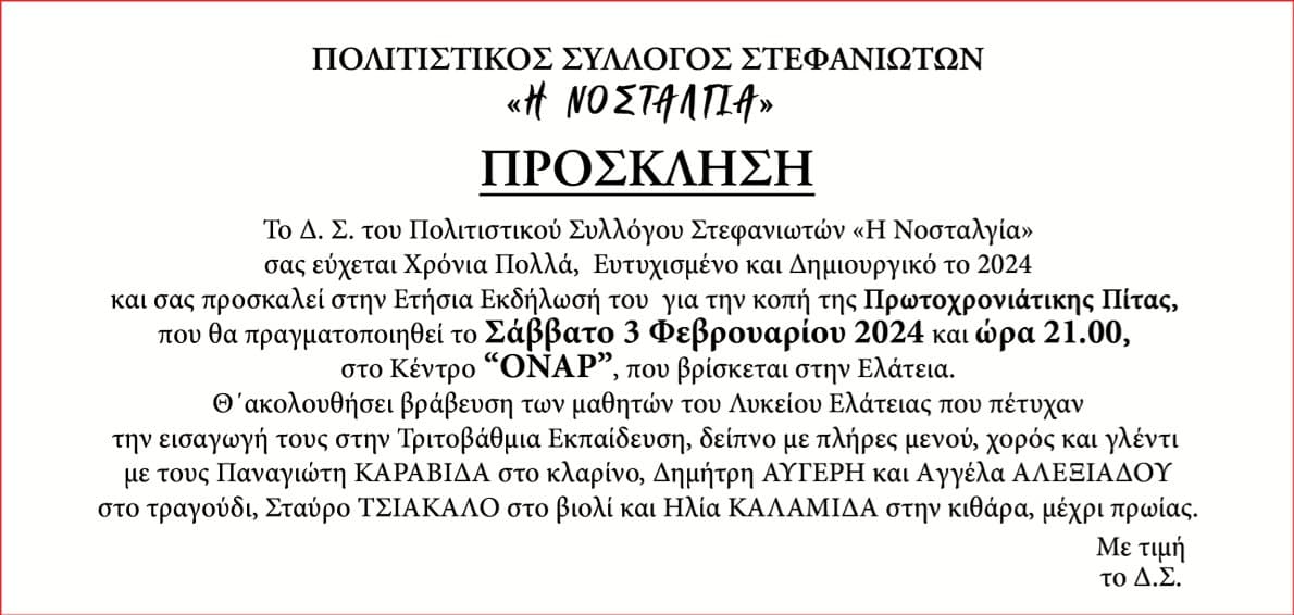Κοπή Βασιλόπιτας στην Ελάτεια του Π.Σ.Στεφανιωτών “Η Νοσταλγία”