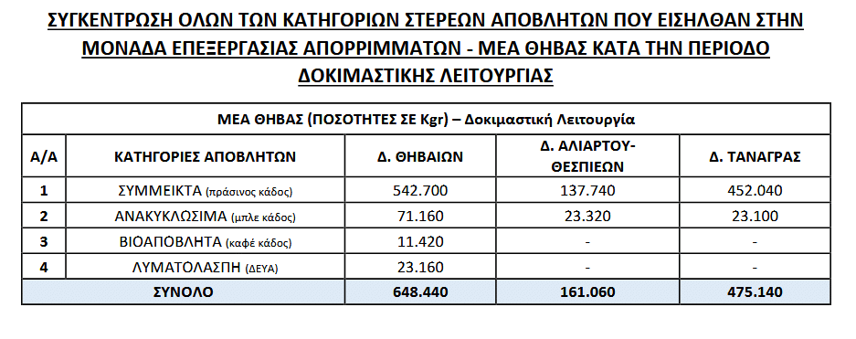 καθώς επίσης και 418.930 Kgr υπολείμματος ανακύκλωσης.