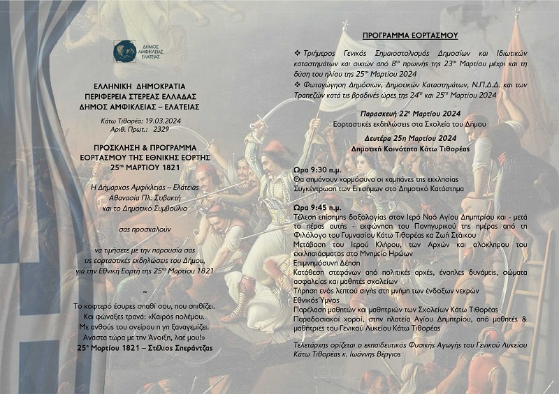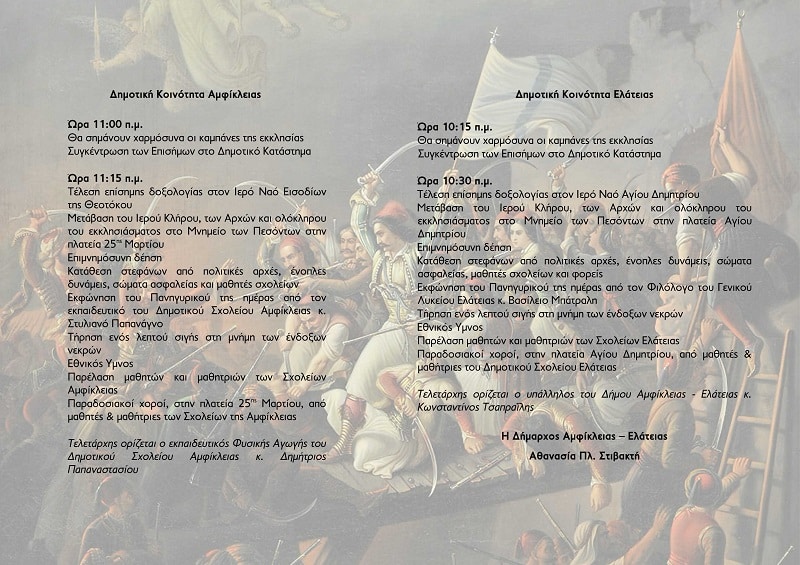 Πρόσκληση & πρόγραμμα εορτασμού 25ης ΜΑΡΤΙΟΥ Δήμου Αμφίκλειας Ελάτειας
