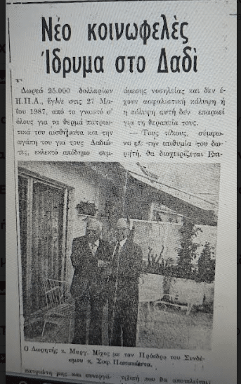 Που τον οδήγησε στη δύση της ζωής του και εις αιωνία μνήμη των γονιών του, να ταξιδέψει παρά την ηλικία του και την μεγάλη ταλαιπωρία, απ την ΑΜΕΡΙΚΗ ως το ΔΑΔΙ, για τον ιερό σκοπό που έθεσε ως στόχο ζωής.