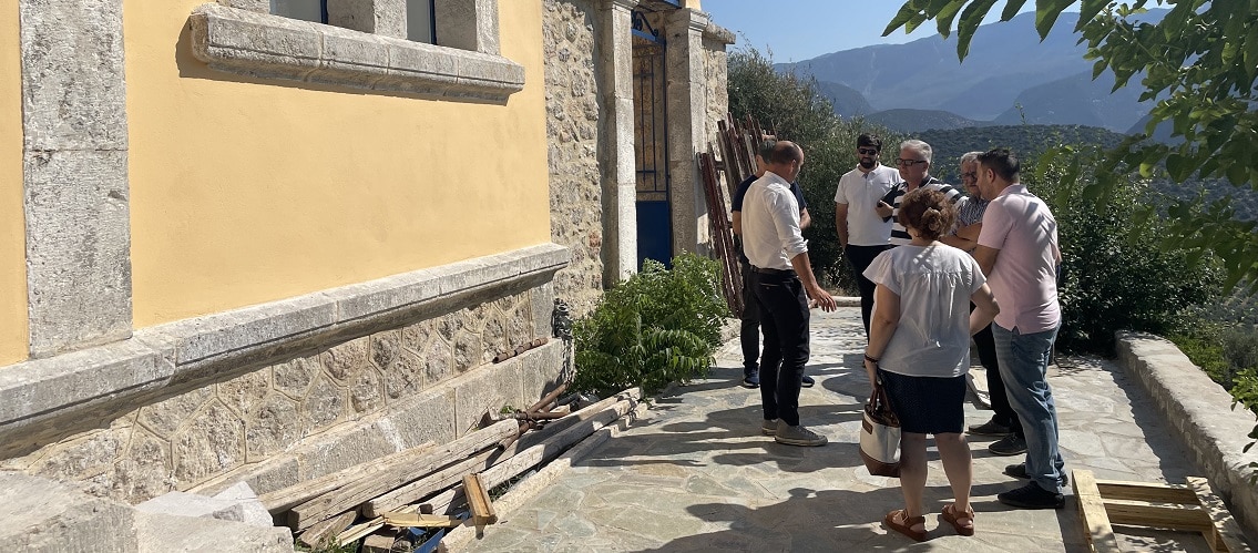Ένα σημαντικό έργο από το Δήμο Δελφών ολοκληρώνεται και αναμένεται να παραληφθεί, στεγάζοντας ακολούθως έναν από τους πιο δραστήριους Συλλόγους της περιοχής, θεματοφύλακας της ιστορίας του τόπου, την Εταιρεία Φωκικών Μελετών. Πρόκειται για το σχολείο της Κοινότητας του Αγίου Γεωργίου, το οποίο επισκέφθηκε την Παρασκευή, 27 Ιουνίου 2025, ο Δήμαρχος Δ. Δελφών κ. Παναγιώτης Ταγκαλής, συνοδευόμενος από τον Αντιδήμαρχο Δ.Ε. Άμφισσας κ. Νικόλαο Λουπάκο, τον Πρόεδρο της Ε.Φ.Μ. κ. Ιωάννη Ράμμο και τον αναπληρωτή Προϊστάμενο της Δ/νσης Τεχνικών Υπηρεσιών κ. Ιωάννη Κουμπογιάννο.