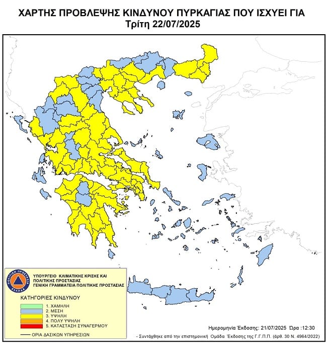 Σύμφωνα με το χάρτη κινδύνου πυρκαγιάς που ισχύει για αύριο Τρίτη 22 Ιουλίου 2025, ο Δήμος Δελφών ανήκει στην κατηγορία 3 (υψηλή κατηγορία κινδύνου), έχοντας θέσει το σύνολο των αρμόδιων υπηρεσιών του σε κατάσταση αυξημένης ετοιμότητας, με άμεση λήψη όλων των προβλεπόμενων μέτρων και δράσεων, λόγω της επικινδυνότητας εκδήλωσης και εξάπλωσης πυρκαγιών.