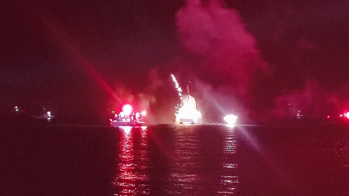 Ζωντάνεψε χθες βράδυ φαντασμαγορικά η ιστορική Ναυμαχία της Αγκάλης, στο λιμάνι της Ιτέας, με οικοδεσπότες τον αντιπεριφερειάρχη Φωκίδας κ. Δελμουζο και τον Δήμαρχο Δελφών κ.Ταγκαλή και παρόντων του υφυπουργού κ Μπουγά και του Δημάρχου Διστόμου, Αράχωβας, Αντίκυρας κ.Σταθά και άλλων επισήμων.