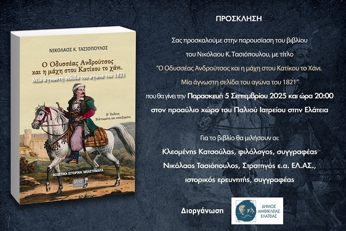 «Ο Οδυσσέας Ανδρούτσος και η μάχη στου Κατίκου του Χάνι. Μία άγνωστη σελίδα του αγώνα του 1821»,