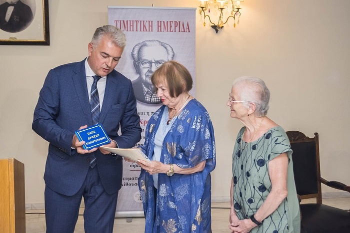 Ιδιαίτερη και συνάμα συγκινητική ενότητα της Ημερίδας υπήρξε η στιγμή όπου οι αδερφές του Δρόσου Κραβαρτόγιαννου, κ. Ασήμω Αζαριάδη και κ. Ευαγγελία Ζεϊμπέκη παρέλαβαν την πλακέτα τιμητικής βράβευσης, ως ένδειξη ευγνωμοσύνης για την προσφορά και το έργο του στην Άμφισσα και τη Φωκίδα.