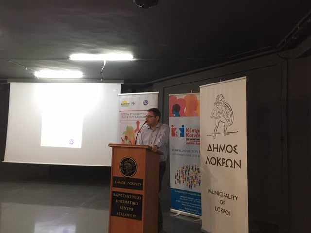 Ομιλητής της εκδήλωσης ήταν ο κ. Αγγελής Δημήτριος,  Πνευμονολόγος – Φυματιολόγος στην Αταλάντη με τίτλο “Ζωή σαν τριαντάφυλλο δίχως κάπνισμα”. Ο ιατρός αναφέρθηκε στις συνέπειες και την αντιμετώπιση του καπνίσματος, και προσέφεραν σημαντικές και πολύτιμες πληροφορίες στο κοινό, το οποίο είχε την ευκαιρία να θέσει ερωτήματα στο τέλος των παρουσιάσεων και ευχαρίστησε το ΕΔΔΥΠΠΥ λέγοντας: «Ευχαριστώ πολύ για την δυνατότητα που μου δόθηκε να ενημερώσω τους συμπολίτες μου στην Λοκρίδα σχετικά με το κάπνισμα. Εύχομαι να συνεχίσετε την αξιέπαινη προσπάθεια σας ειδικά στη Ελληνική επαρχία».