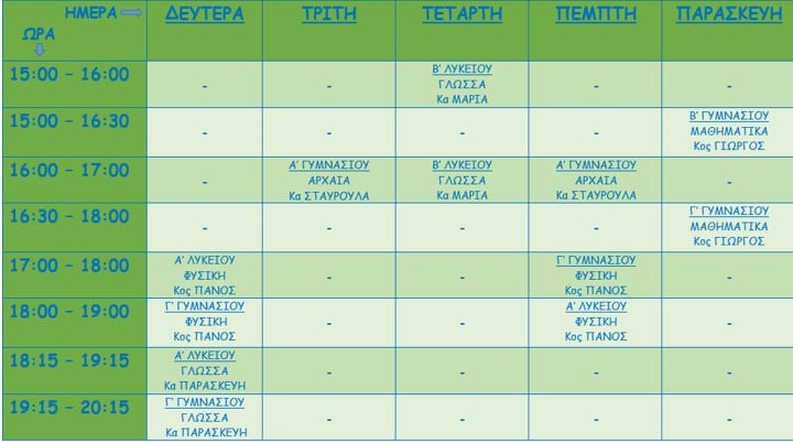Το πρόγραμμα των μαθημάτων έχει ως εξής: