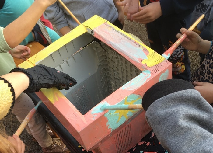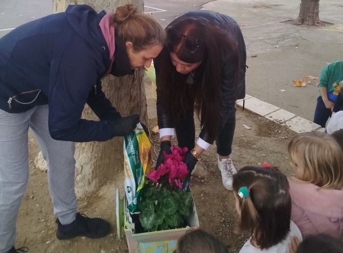 Οι μαθητές της Α’ και Β’ τάξης σε συνεργασία με την Αντιδήμαρχο Παιδείας κ. Γιούλη Καζάνα, την Αντιδήμαρχο Πρασίνου κ. Σπυριδούλα Δημάκη, την Διευθύντρια του 1ου Δημοτικού Σχολείο Αταλάντης κ. Βασιλική Φλώρου και τις εκπαιδευτικούς των τάξεων ζωγράφισαν τις οθόνες από παλιούς υπολογιστές και τις μετέτρεψαν σε γλάστρες με κυκλάμινα. Με αυτό τον τρόπο δημιούργησαν μια μικρή αλλά σημαντική γωνία πράσινου στον προαύλιο χώρο του σχολείου τους.
