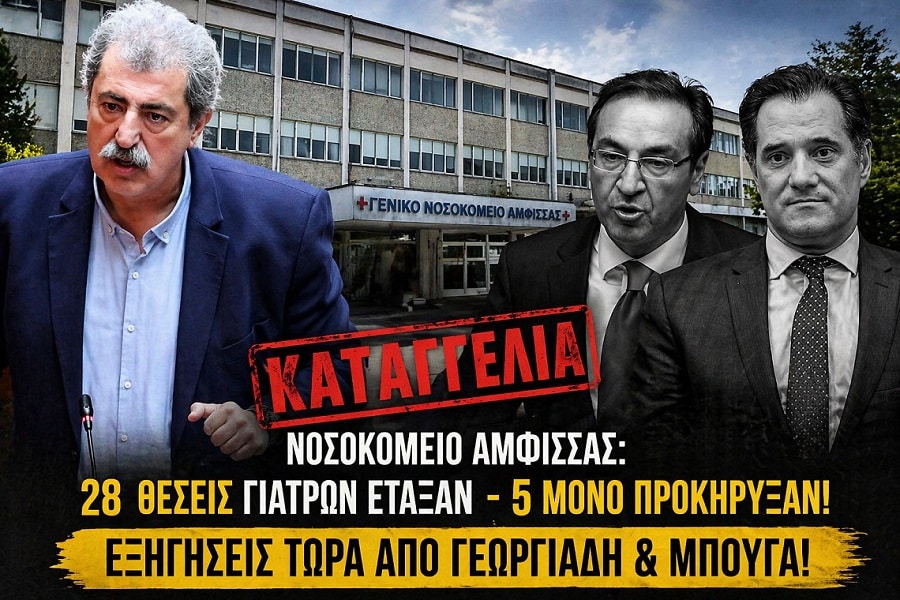 Η καταγγελία του πρώην Αναπληρωτή Υπουργού Υγείας – επί θητείας του οποίου το Εθνικό Σύστημα Υγείας ανατάχθηκε – και Βουλευτή Χανίων, κ. Παύλου Πολάκη χρήζει άμεσων απαντήσεων τόσο από πλευράς του Υφυπουργού Δικαιοσύνης και Βουλευτή της Π.Ε. Φωκίδας, κ. Γ. Μπούγα, όσο και από πλευράς του αρμοδίου Υπουργού, κ. Αδ. Γεωργιάδη.