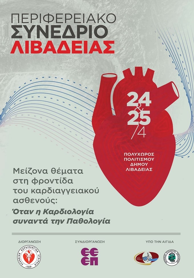 Με έντονο ενδιαφέρον αναμένεται η διοργάνωση του 1ου Περιφερειακού Συνεδρίου της Ελληνικής Καρδιολογικής Εταιρείας (ΕΚΕ). σε συνεργασία με την Ελληνική Εταιρεία Εσωτερικής Παθολογίας (ΕΕΕΠ). Το συνέδριο θα λάβει χώρα στις 24 και 25 Απριλίου 2026, στον Πολυχώρο Πολιτισμού του Δήμου Λιβαδειάς (συνεδριακή αίθουσα «Κωνσταντίνου και Αγλαΐας Παπαπαναγιώτου».