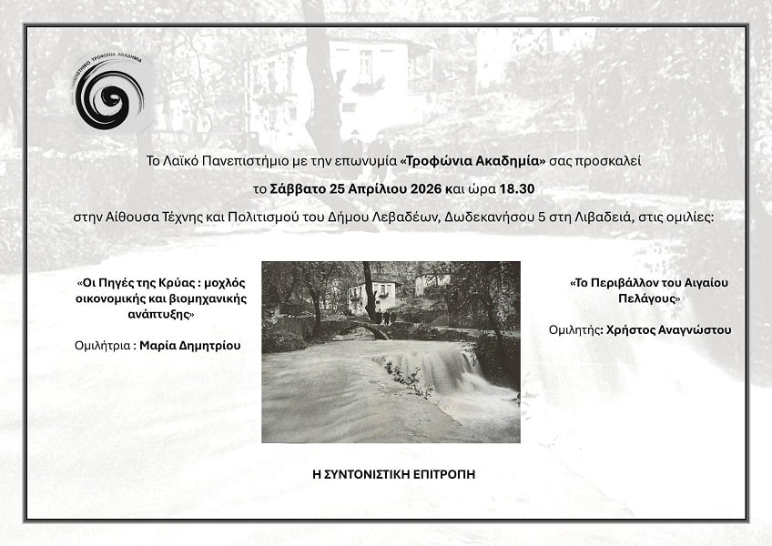 “Οι Πηγές της Κρύας: Μοχλός Οικονομικής και Βιομηχανικής Ανάπτυξης” με ομιλήτρια την Μαρία Δημητρίου