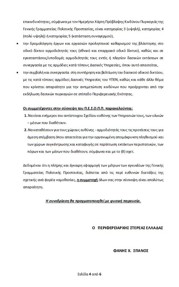 Πραγματοποιείται την Πέμπτη 16 Απριλίου 2026 και ώρα 10:00 π.μ., στο Διοικητήριο Βοιωτίας, η τακτική συνεδρίαση του Περιφερειακού Επιχειρησιακού Συντονιστικού Οργάνου Πολιτικής Προστασίας (Π.Ε.Σ.Ο.Π.Π.), στο πλαίσιο της προετοιμασίας για την αντιπυρική περίοδο 2026.